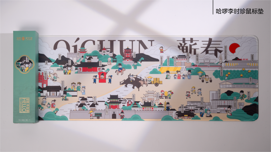 事实上,"哈啰李时珍" 系列文创产品远不止于此 —— 从萌趣十足的Q版李时珍手办、融入蕲春四宝元素的创意钥匙扣,到印刻本草图谱的实用鼠标垫,再到将蕲春山水与本草图案融入纤维纹理的绵柔巾、纸巾系列,整个产品线以多元形态让李时珍文化可触可感。