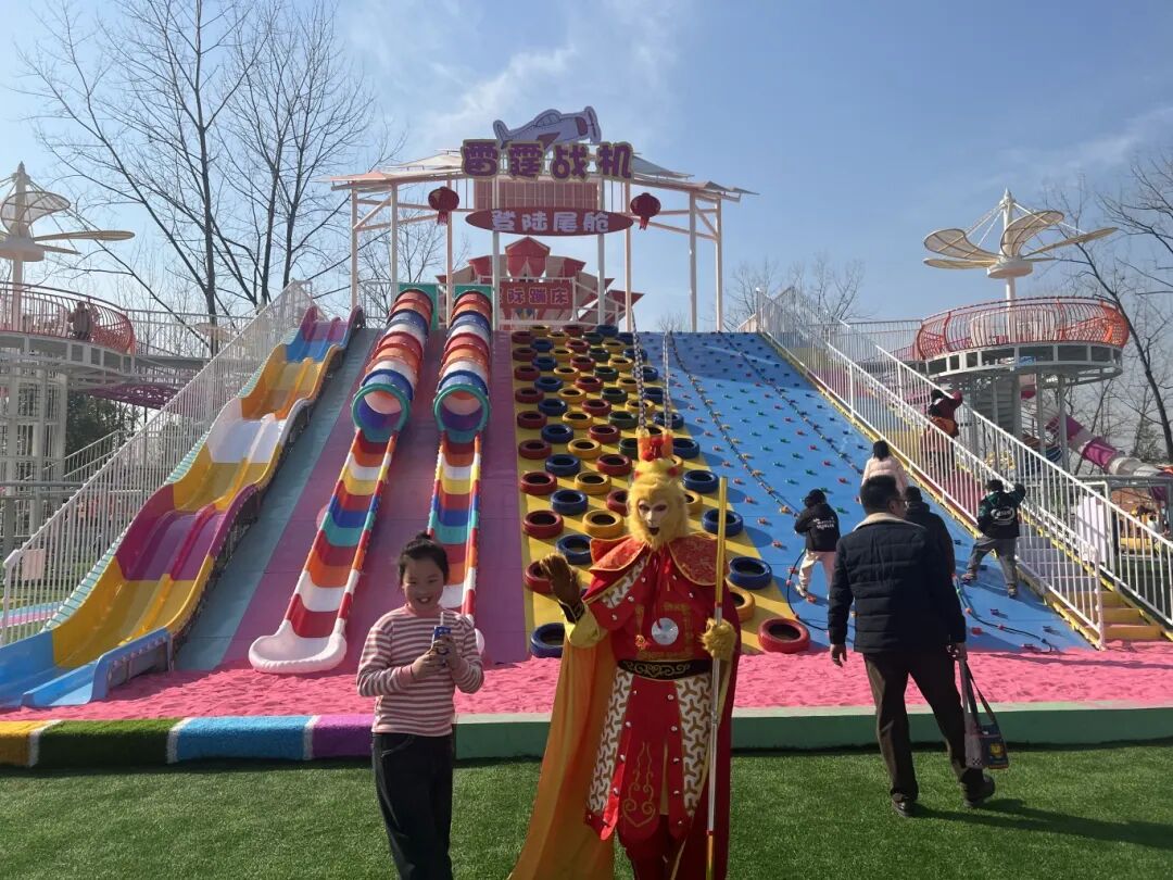 无动力航空母舰大型综合体雷霆战机是乐园最大的无动力项目综合体,占地4000平方米,集成了彩虹滑道、滑世界、勇攀高峰、星际蹦床、玻璃栈道、户外拓展、环型秋千等32个项目。