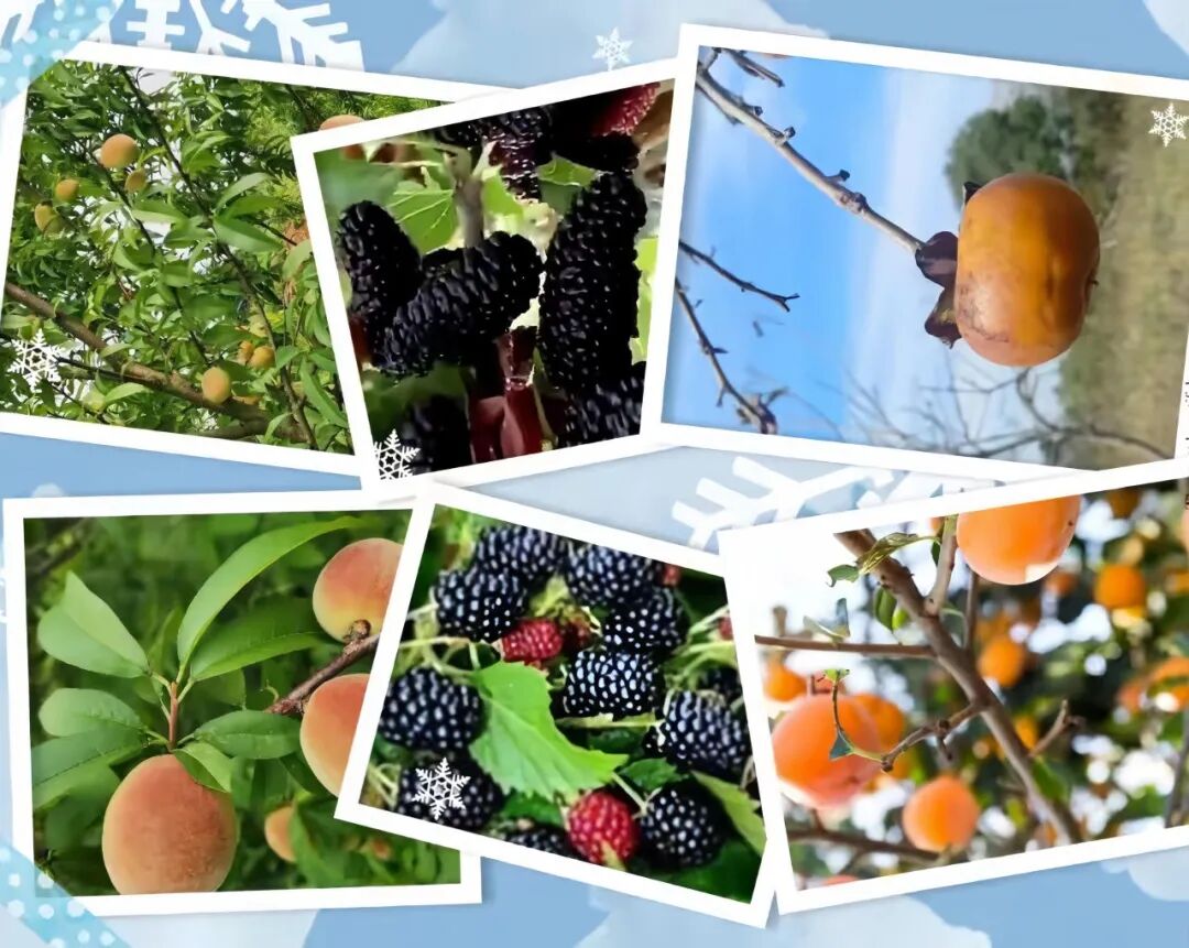 果园里,奶油桑葚已探出绿茸茸的脑袋,桃李柿树已吐露新芽,预示着丰收的美好。