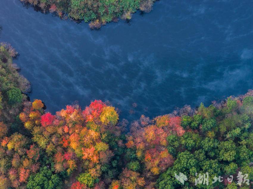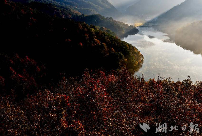 在蕲春县张塝镇塔林村的深山褶皱里,九龙潭大峡谷的终端藏着一处遗世景致——九潭湖水上红叶。